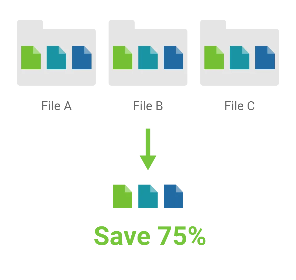 Ngay khi dữ liệu được ghi vào, hệ thống sẽ kiểm tra và loại bỏ các khối trùng lặp, giúp giảm đáng kể dung lượng lưu trữ sử dụng.