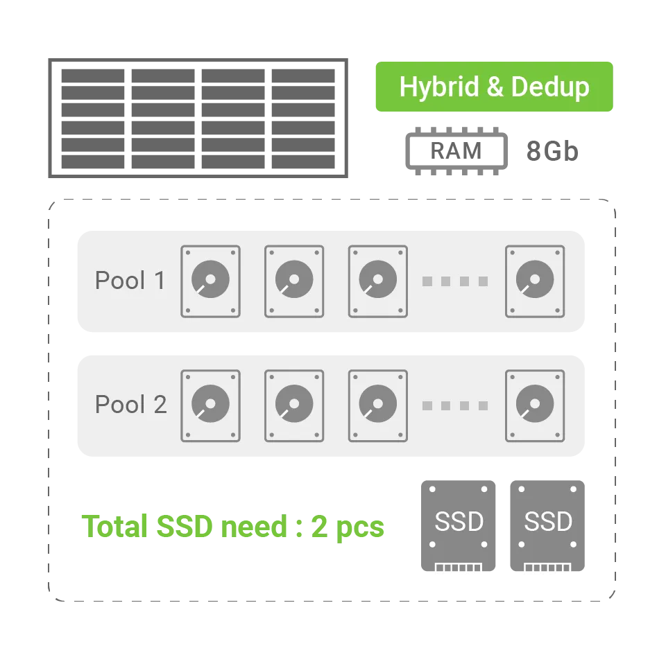 Với việc tích hợp hai chức năng, giờ đây bạn có thể dễ dàng cấu hình để hệ thống sử dụng đồng thời bộ đệm đọc/ghi và khử trùng lặp dữ liệu.