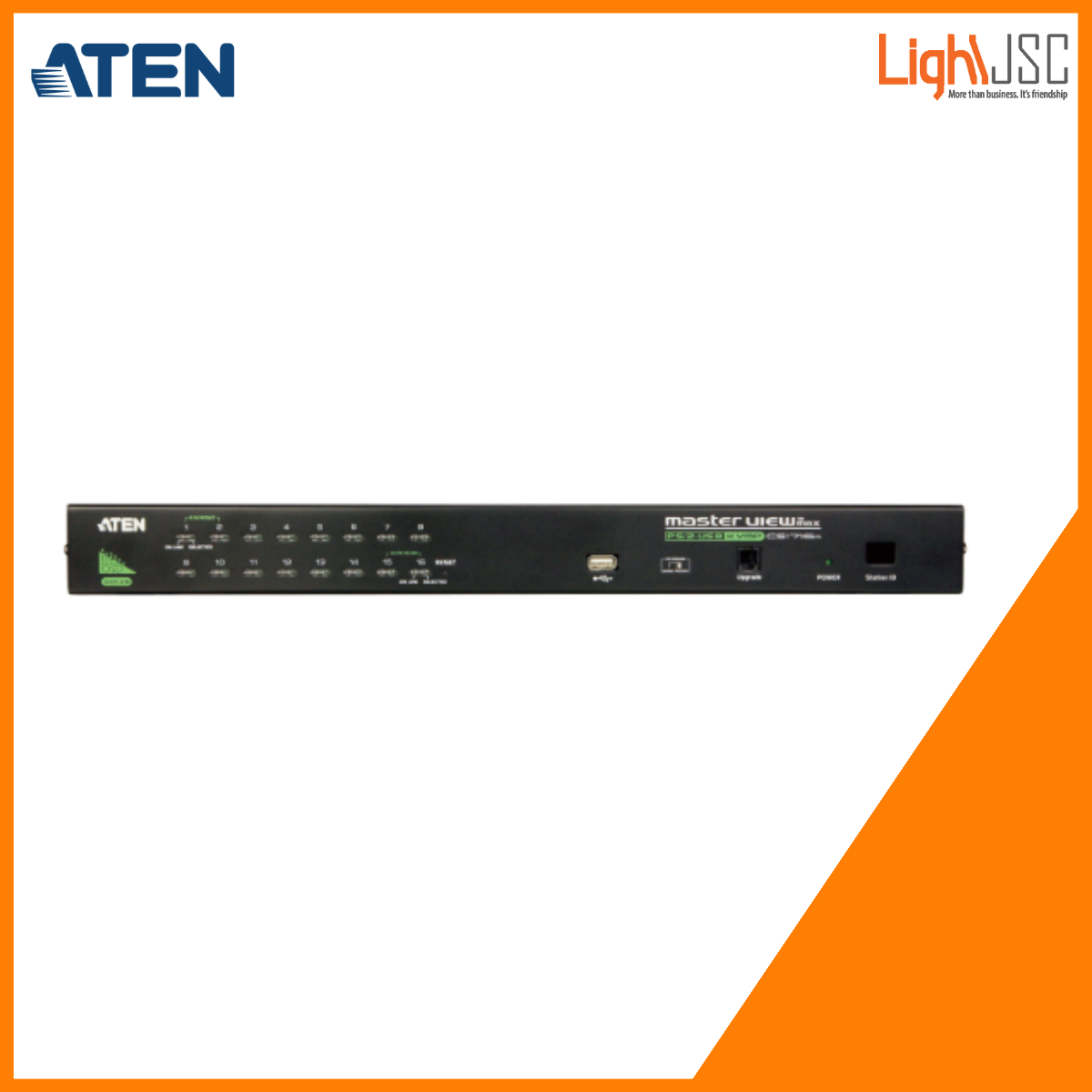 The CS1716A KVM switch is a control unit that allows access to multiple computers from a single PS/2 or USB console (keyboard, mouse, and monitor). A single CS1716A can control up to 16 computers. As many as 31 additional switches can be daisy-chained to each other, so that up to 512 computers can all be controlled from a single keyboard-monitor-mouse console. Additionally, a front panel USB port is available for each computer to access any peripherals connected to it on a one-at-a-time basis.
