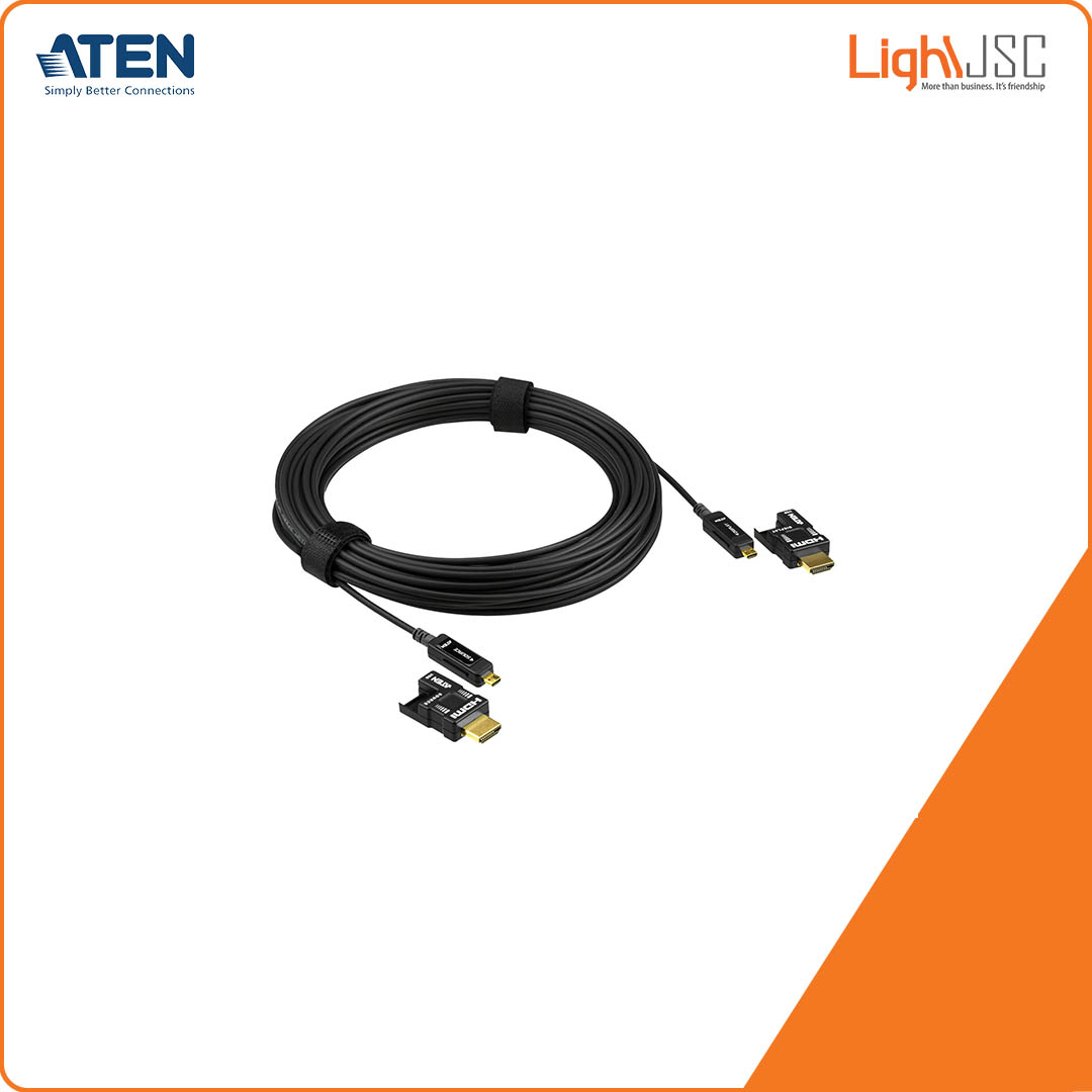 Aten VE7833 30M True 4K HDMI Active Optical Cable utilizes AOC technology that enables conversion between input signals and optical signals for optimum high bandwidth data transmissions. The EMI-resistant optical cable is available in 30 m with full support of True 4K resolutions. It is fully compliant with HDCP 2.2 standards and meets HDMI specifications including 3D, deep color, and data rates up to 18 Gbps. Supported Dolby True HD and DTS-HD Master Audio, the optical cable guarantees lossless audio signal transmissions.