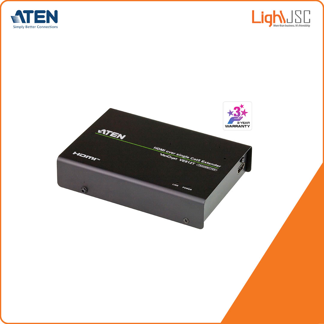 Aten VE811T HDMI HDBaseT Transmitter supports HDBaseT technology that uses a single Cat 5e cable to extend signals up to 100 m.The VE812T not only supports HDMI (3D, Deep Color ) but also Ultra HD (4k) and is HDCP compatible. Furthermore remote EDID pass-through ensures optimum video quality for your HDMI display.