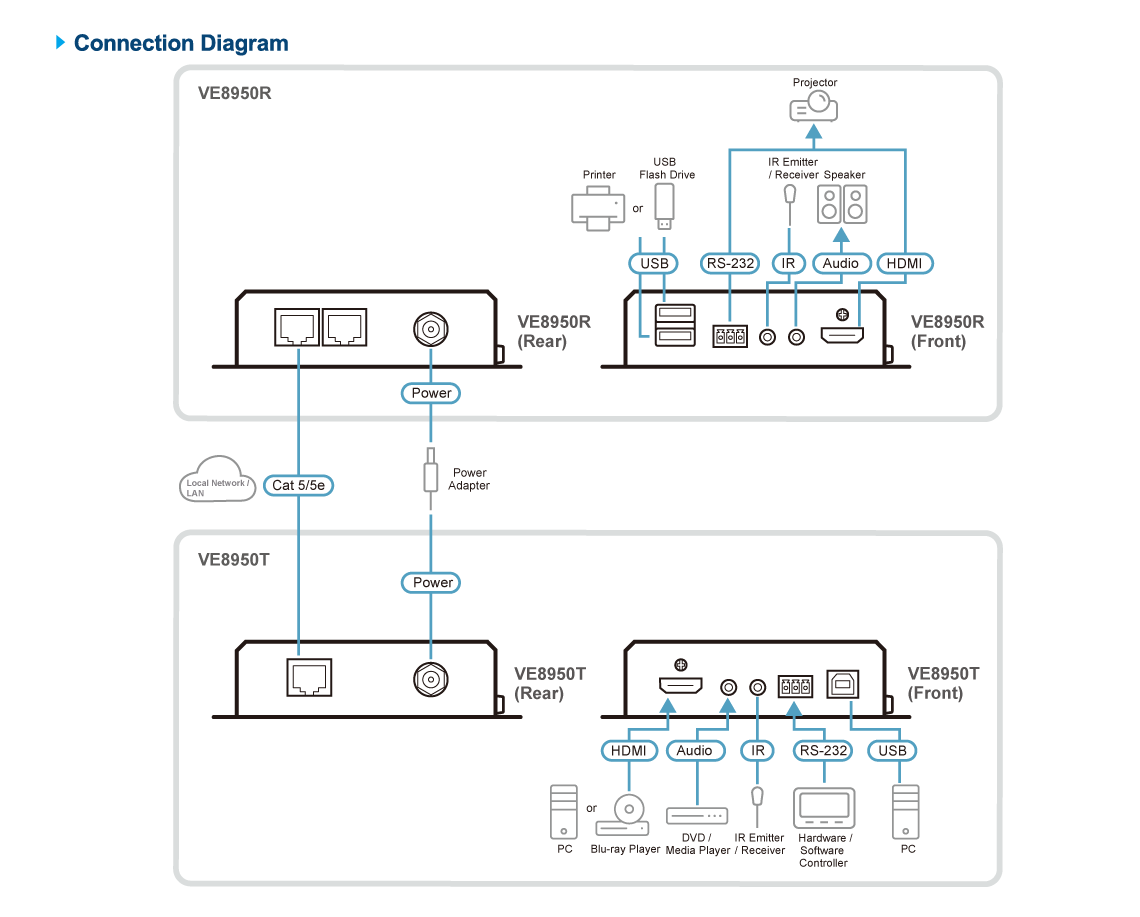 - 1x VE8950R 4K HDMI over IP Receiver