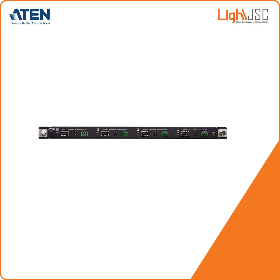 ATEN VM7584K2 4-Port 10G Optical Input Board offers an easy way to route 4 HDMI sources to HDMI displays through optical extenders, and up to 16/32 input and 16/32 output connections on an ATEN Modular Matrix Switch through various AV interfaces. Designed with fiber optics technology for long-distance transmission, the VM7584 along with its SFP+ modules extends uncompressed 4K signal up to 300 m (using VM7584K1) or 10 km (using VM7584K2) over duplex fiber optic cables. The optical fiber simplifies cabling by guaranteeing an interference-free long-haul transmission of audio, video, IR, and RS-232 control signals over one single set of duplex cables that easily connects to the SFP+ slot. Moreover, the VM7584 supports a high data rate of 10.2 Gbps and meets HDMI Specifications that include 3D, Deep Color, and 4K to ensure superior video quality.