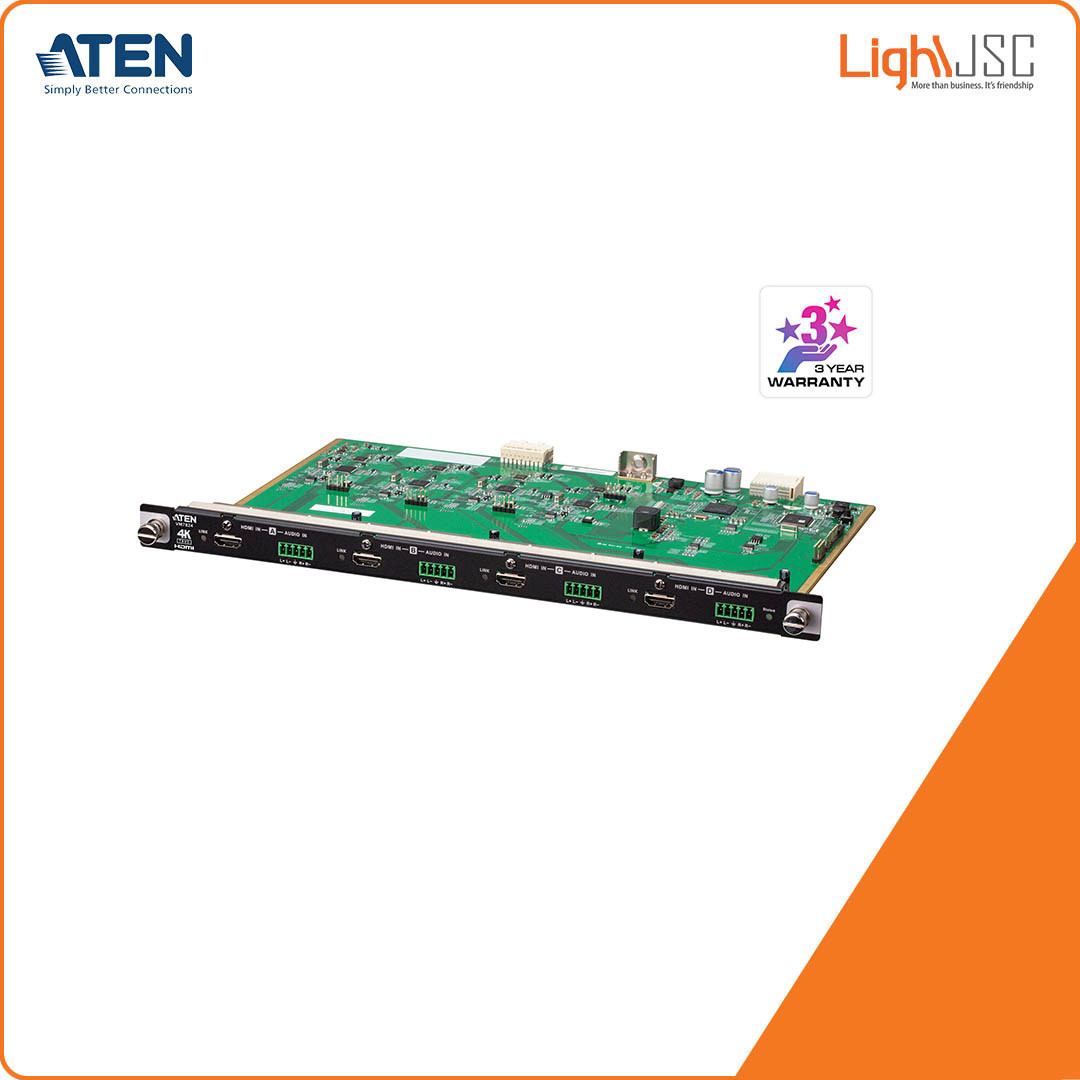 ATEN VM7824 4-Port True 4K HDMI Input Board is a True 4K HDMI input board that works with an ATEN Modular Matrix Switch to offer an easy way to route 4 HDMI audio/video sources to 4 displays with True 4K high-definition images support. In addition to the HDMI interface that carries digital A/V signal, the VM7824 also provides 4 stereo audio input ports that enable stereo audio embedding.
